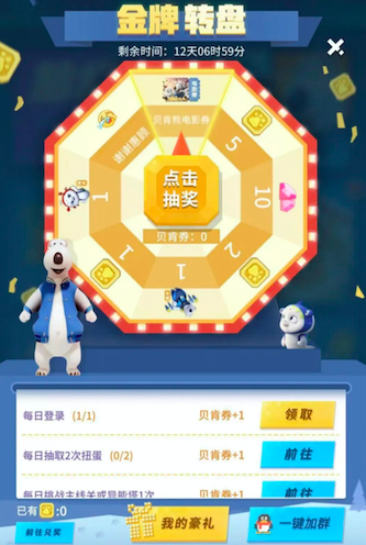 此外,贝肯熊与小迪还准备了金牌转盘。完成特训任务即可获贝肯熊奖券,使用奖券可以在黄金转盘抽奖,不仅有典藏战机、典藏宠物、贝肯币,还有粉钻、代金券等超多好礼。