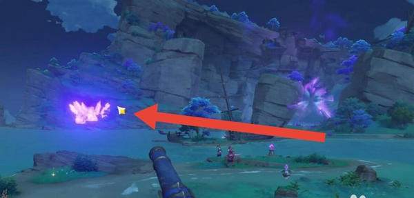 2、然后传送到右边的小岛上,先使用大炮,对准对面的裂隙开启,击碎;