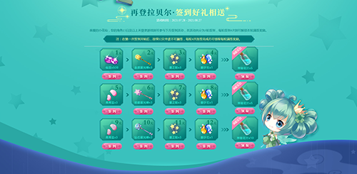 再登拉贝尔,签到好礼相送。两款游戏15天及以上未登录的玩家,可以通过专题活动进行签到,每日签到的奖励会通过游戏内进行发放,每连续签到4次即可额外获得一次满勤奖励,假如中途漏签,则无法补签和领取当轮的满勤奖励哦,快快号召你的亲友前来参与为回归玩家准备的签到活动吧。