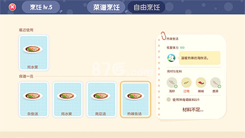 《心动小镇》玩家不仅可以在小镇的河里、海边钓鱼,还可以邀请朋友一起坐船出海海钓;个别烹饪好的食物带有神奇特效,玩家吃完后会触发 “喷火”、“跑步加速” 等有趣的 BUFF;家中的钢琴不仅可以演奏,还能支持玩家录制自己演奏的音乐,刻录好的音乐可以通过家具留声机进行播放。