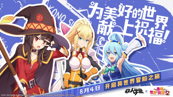 意犹未尽!《非人学园》×《为美好的世界献上祝福!2》联动明日开启,来自异世界的红魔族天才魔法师惠惠闪亮登场,与阿库娅、达克妮斯一同热闹学园,联动福利爆裂重启!