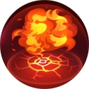 使用卷轴道具,消耗20%法力值用火焰轰击目标区域的敌人,造成法术伤害。每打倒一名敌方单位,回复法力值并永久获得最大法力值。赋予命中的敌方灼烧状态8秒。
