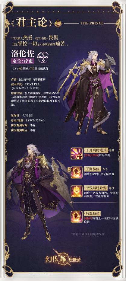 《君主论》·洛伦佐光临阿克夏书馆,他深谙权谋,权杖一响,作为君王的他,杀伐果断,教众人俯首称臣,宛若雄鹰用双翅划破了宁静,将乌云撕裂,只为迎接属于他的黎明。