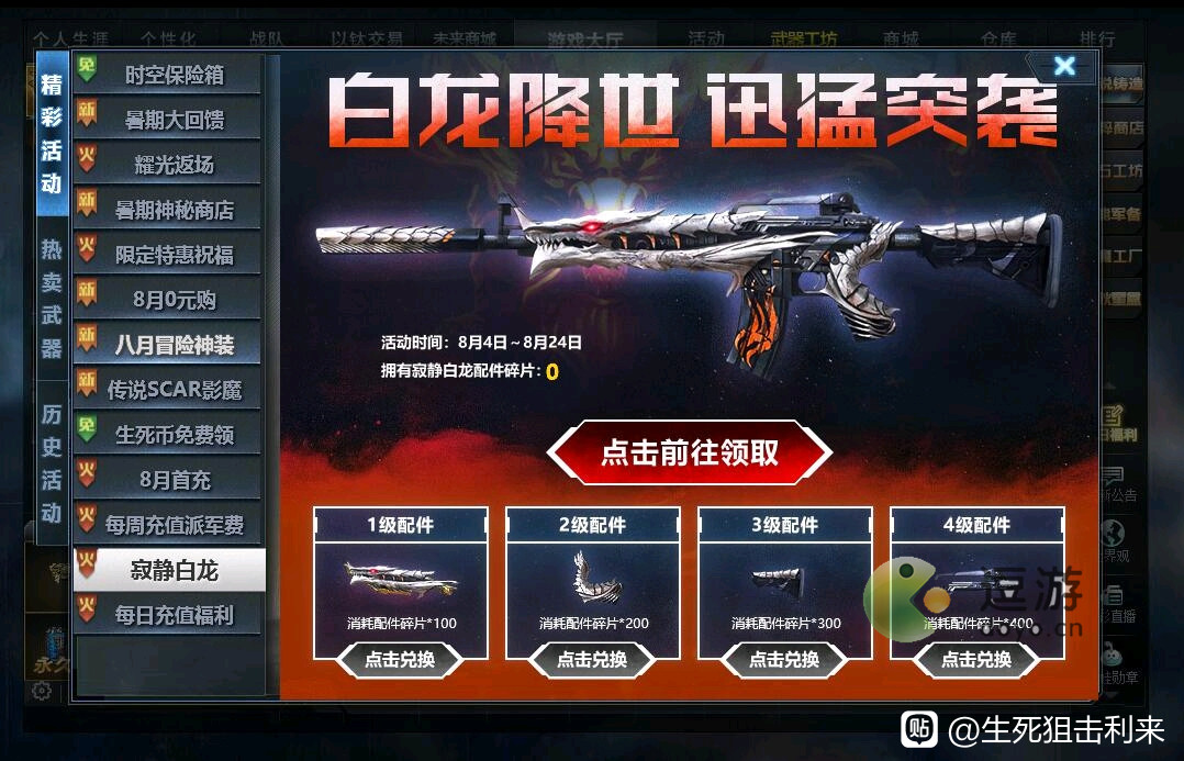 生死狙击寂静白龙是新出的一把武器,武器可以搭配各种配件,很多玩家们想要了解它的强度,小编这就为玩家们介绍一下它搭配完配件之后的强度!