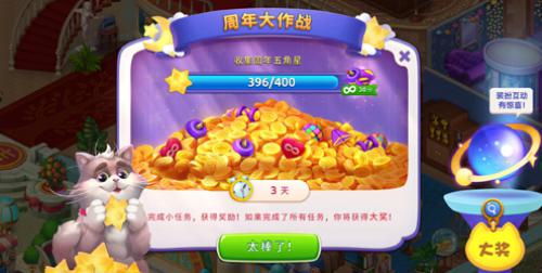 生日派对必不可少的仪式,必然是大家一起分生日蛋糕了。玩家可通过闯支线关卡收集蛋糕材料,集齐材料获得蛋糕铲,使用蛋糕铲翻开蛋糕,解锁周年纪念画,收获道具好礼。蛋糕已备好,等家人们来品尝。