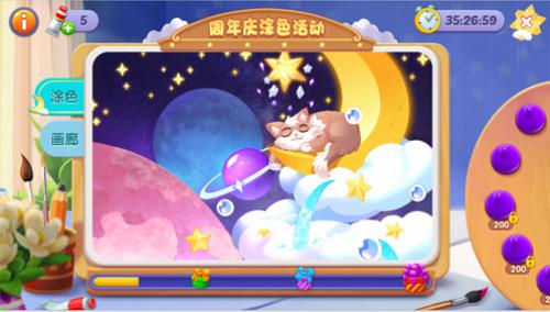 据说亲手用画笔把星空画在画里,许愿更容易成真哦。活动期间(8月9日-8月22日),玩家可通过闯关积累颜料,用颜料给3周年主题插画填色。完成第一张填色,可获得互动装扮【许愿喷泉】;完成第二张填色,可解锁【生日蛋糕】插画!向【许愿喷泉】投入金币可以许愿,即有机会获得道具、装扮等奖励,一起许下你的愿望吧!