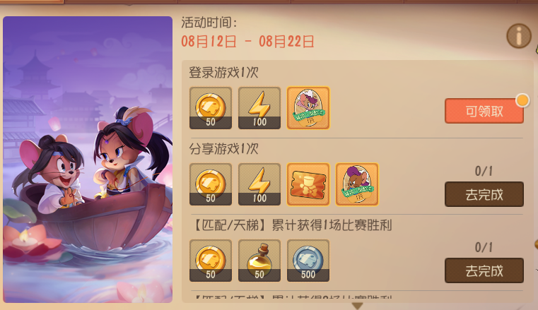 8月12日至22日期间,七夕系列活动浪漫上线。在鹊桥相会中完成任务,就能获得包括金币、银币、知识点、活跃度、邮票、剑客莉莉体验卡、剑客杰瑞体验卡、皮肤碎片兑换券等奖励。
