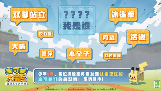在前不久落幕的2021年第十九届ChinaJoy上,《宝可梦大探险》宣布了神秘明星代言人和全新宝可梦两大悬念,引发了探险家们的热议。而随着代言人版本的正式发布,明星探险家的神秘面纱已经揭开——他就是新生代实力演员吴磊,青春洋溢的他在方可乐岛上开启环岛骑行,并与探险家们结交好友,共享探索旅途。但全新宝可梦的悬念依然牵动着千万探险家的心,这位有着“双脚站立”“大嘴”“咬力强”“小个子”等特点的新伙伴究竟是谁?