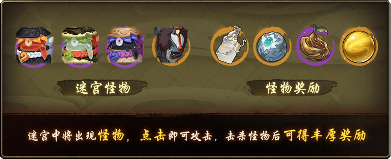 探索迷宫时,到达的层数越高奖励越好,但是需要消耗一定行动力,行动力清零时将终止探索。迷宫中潜藏着许多“怪物格”,大人点击即可击杀怪物并收获大量素材。