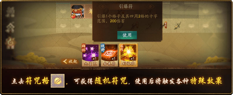 除了直接攻击外,大人们也可以在迷宫中点击“符咒格”或“法器格”来提升战斗效率。