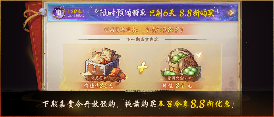 8月25日后,下期降妖嘉赏令将开启限时预购功能,在8月31日24时前购买还可享受高达8.8折的优惠!