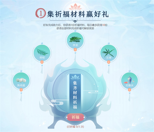 上巳节版本助力赢好礼活动来袭!本次活动分为两个部分,一是「集祈福材料赢好礼」,活动期间好友成功助力后,可获得1份祈福材料,成功收集5种不同祈福材料后可开启祈福好礼;另一个部分为「邀请好友回归」,登录老虎账号即可邀请回归好友参与活动,若好友成功回归,道友即可领取奖励。