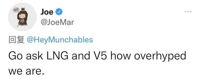 没多久,T1战队的老板就在社交媒体上回怼了这位解说的这条内容,他表示“你去问LNG和V5,看看我们有没有被高估”。很明显,T1战队在训练赛是暴打了LNG和V5的,所以他才会用这句话来回怼LPL的英文流解说,毕竟LNG和V5都是LPL的强队,V5更是常规赛第一。