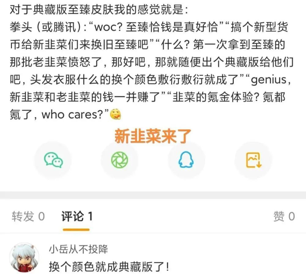 通过官方公布的画面来看,这些典藏的至臻皮肤根本没有太多的变化,就如同炫彩皮肤一样,很多的玩家也调侃,典藏至臻应该是至臻皮肤的炫彩吧。官方的这波操作属实,是将整个的热度都拉满了,不仅仅收割了一批新的韭菜,还让老韭菜心满意足,免费获得了炫彩皮肤。接下来的一段时间里,肯定会有更多充值的玩家,官方也是收获满满。