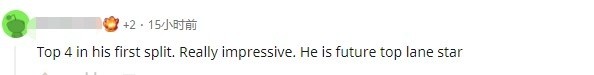 -他的第一个赛季直接打到了前四,表现真的不错,他是未来上路的明星。