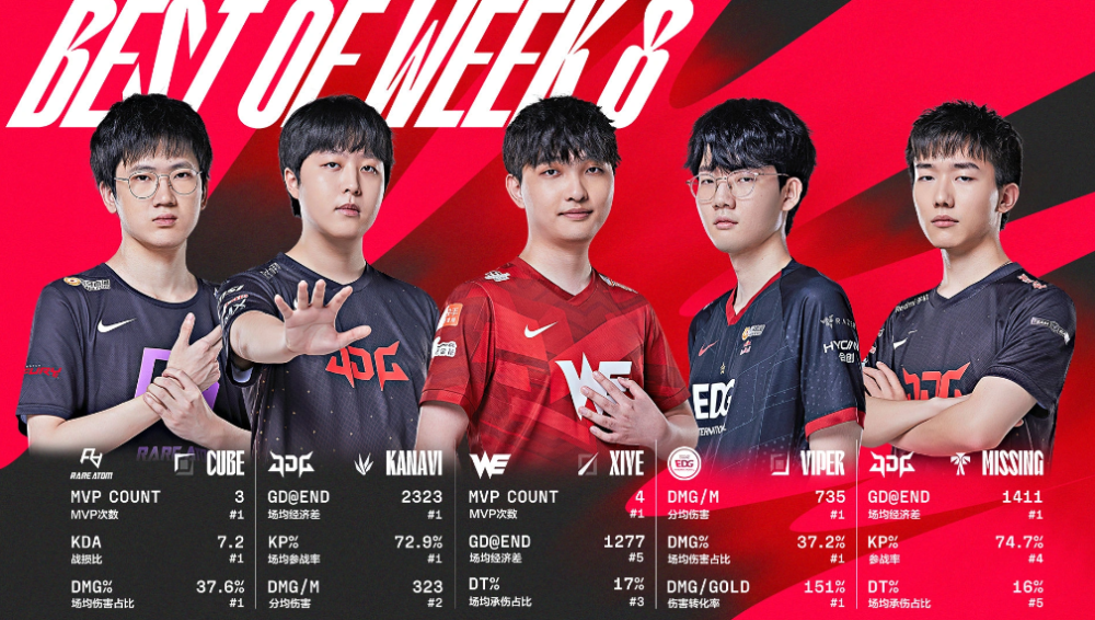 不过这都不是重点,重点是上一周的最佳五人组评选结果出来了,分别是上单RA.Cube、打野JDG.Kanavi、中单WE.xiye、ADC是EDG.Viper、辅助JDG.Missing。来自虎牙英雄联盟板块的大神主播北枫对此也相当关注,北枫认为这一个评选结果着实有点魔幻,这几位选手当中,唯独EDG在本赛季还过得起,其余几位都有点出乎我们的意料。
