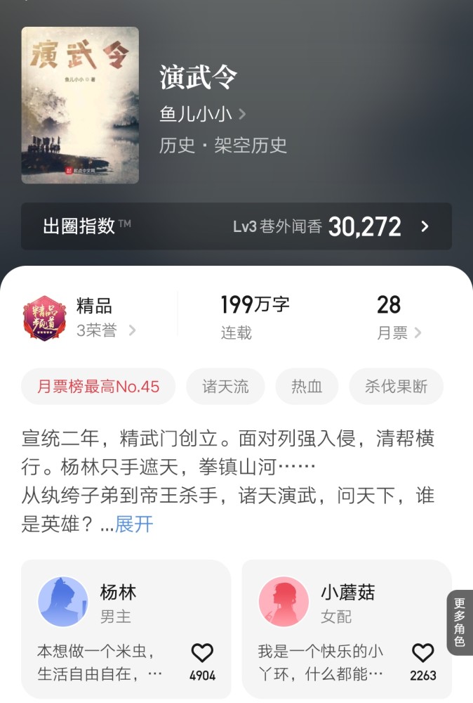 书名里的“演武令”就是主角的金手指,喜欢看涉及国术副本的无限流小说的小伙伴可以试试。