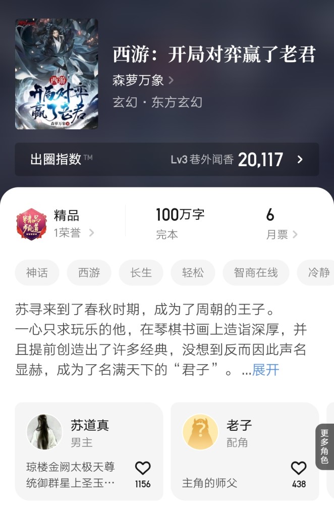 结果等到自己长大,却发现自家守藏室的管理员是老子,最后更是拜入其门下,开始了在西游神话里的故事。对于西游同人有兴趣的可以去试试。