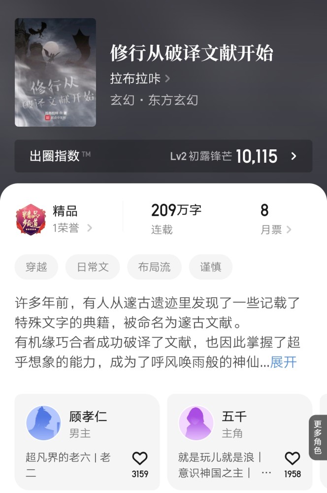 作者依靠写辰东同人达成了五级已经很厉害了,只是这部作品在起点的成绩真的一般,其他地方倒是不错。