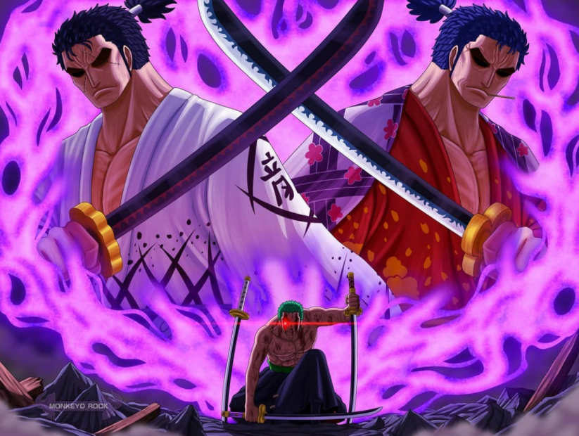 说完了船长路飞,接下来聊一聊战斗员索隆,索隆在团中的影响力不必多言,是实至名归的核心人物。前不久更是被尾田亲自认证是团中NO.2的船员,几乎没有人质疑索隆的个人实力。在这次的鬼岛大战中,索隆与三灾烬展开激烈交锋,过程中一记“阎王·三刀流·炼狱鬼斩”将烬彻底击败,自此索隆就获得自己的专属新称号“阎王”。