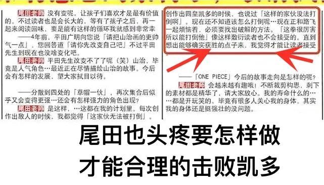 尾田曾在几年前的访谈中提到关于敌人以及凯多的问题,也表达出自己对这些敌人的看法。