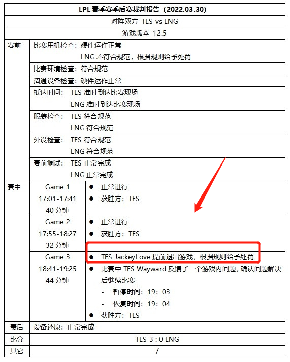 LPL裁判报告:阿水在TES和BLG、TES和LNG的比赛中退出游戏