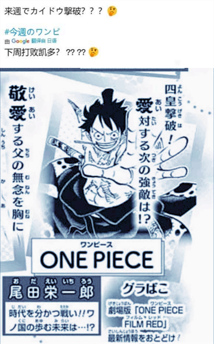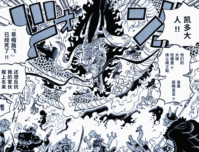 更何况,这个标题描述得也是模棱两可,击破也不等于击败,现在桃之助,大和等人还未参战,只是在边缘“ob”输出,根本没衬托出结局的悲壮氛围。说实话,但凡此前尾田给凯多来个能力强化,或者是操控焰云飞向花之都,然后大家紧张,然后上演一波躺倒复活的剧情,都会让人觉得更说服力。所以这份情报大家就当看个热闹,没必要过分较真。
