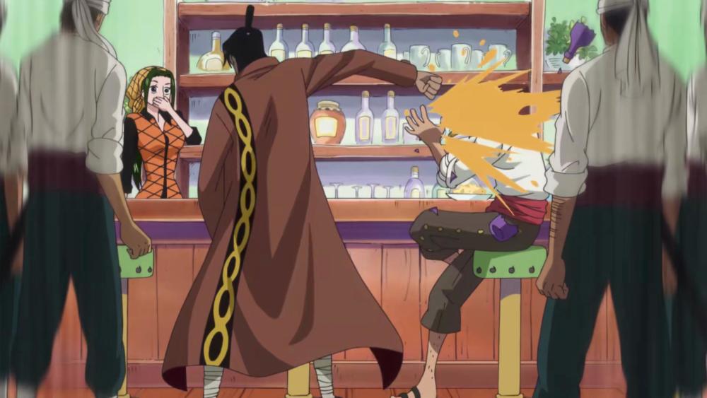 再来说下四皇之一较为神秘的红发。关于红发的爆头在漫画第一话就已经向观众展现,当时“山贼王”西格来买酒,但酒都已经被红发海贼团买光了,红发为了表达歉意向西格递了一瓶酒,但换来的却是无情的“爆头”。红发的爆头与其他四皇不太一样,他本人并没有受到什么伤害,只是被酒瓶爆裂的酒水波及到了而已,但从画面上来看确实是被“爆头”了。