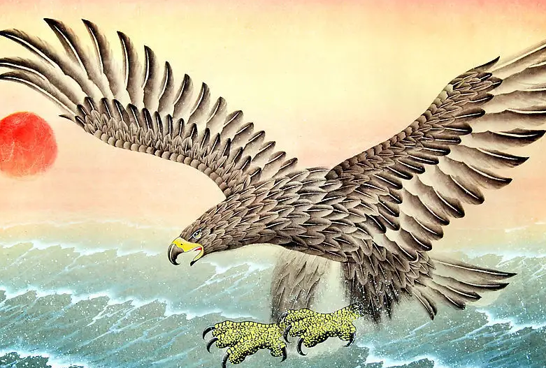 而到了西方,大鹏的形象依然是展翅千里,体形巨硕,《阿波罗游记》、《一千零一夜》中都有大鹏鸟的出现,而西方大鹏的溯源,有说法认为和中国中的大鹏有所不同,其可能最早来自于古波斯神禽“峨姿”,而不管是东方还是西方,大鹏鸟的形象都宛如一只巨鹰,外观类似于秃鹰或者是以及灭绝的恐鸟,有的绘画中大鹏的形象更类似于雕,如白头雕,不过小二个人认为急冻鸟形象源于大鹏有牵强附会之说,毕竟外观差异还是有点大的(上图为大鹏的想象图)。