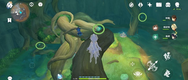 3、我们来到树上用元素视野观察,会发现有三片小树叶,都摘取后我们解锁下面的元素柱子,解锁后解锁中间的精致宝箱,可以彩蛋成就【生命之谷的居民】,和一个彩蛋物品【干枯的种子】,从派蒙的嘴里可以得知这个物品有关须弥。