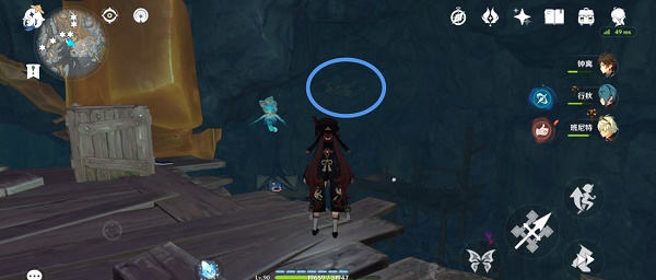 2、进入洞穴在洞口,我们用炸药桶把洞口岩石炸开,继续往前走,来到洞内门口,派蒙会让我们用元素视野观察,会发现树上有一个小叶子。