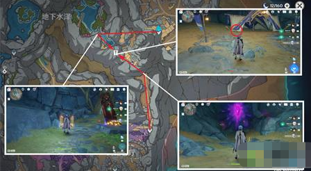 1线,来到地下水泽的底部,向西南方向走,可以看到一面墙,它和别的墙...好像也没什么不一样,总之用双手剑或者岩元素攻击击碎即可