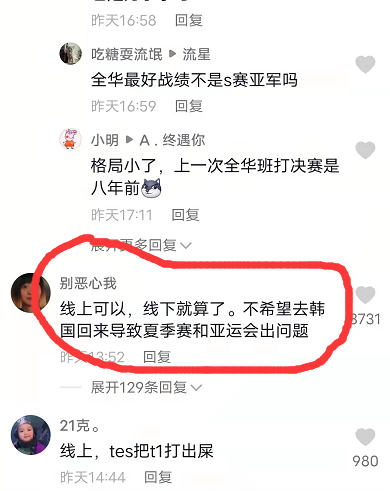 很多中国的网友表示:比赛可以打,但必须线上打,绝不能去线下,毕竟选手的健康是最重要的,而且亚运会也临近了,也要用良好的身体备战亚运会。如果非要线下打,那就不必参加了,直接把冠军让给LEC。
