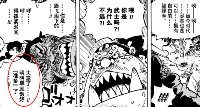 但其实网友们想错了,尾田并没有拖剧情,因为雷藏想要灭火这件事在剧情中早有伏笔。当初雷藏成功拖垮了福禄寿后,甚平刚好也来到了现场,他询问雷藏为什么不跑,雷藏说了一句“你是路飞阁下的?得抓紧时间了,大意了,明明就做好准备了”。