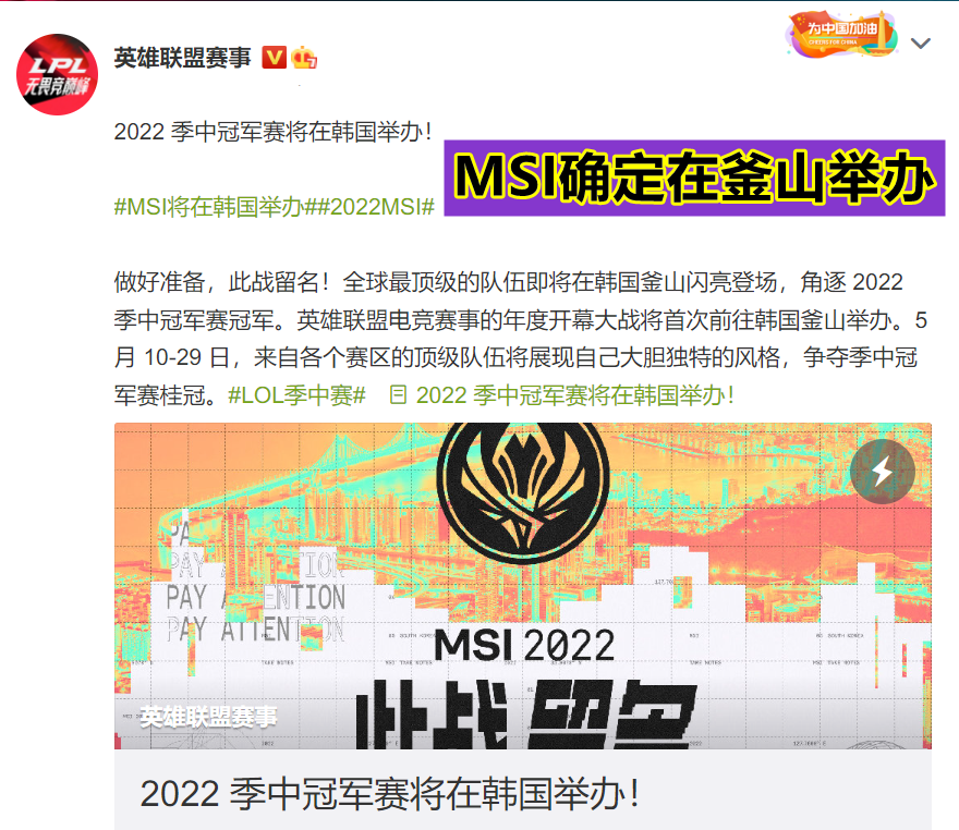大家觉得这次韩国MSI最终是否能顺利举办呢?欢迎在下方和狗子一起互动~
