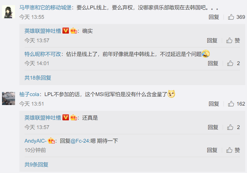 有不少网友呼吁将MSI改成线上赛,但两个赛区的队伍如果改成线上赛,首先就不能保证双方选手的Ping,其次还要考虑各个赛区时区的问题,但如果LPL不参加,这次韩国MSI的确会成为有史以来最没有含金量的一届。