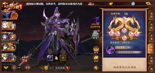 和首位链魂武将一起登场的,还有令人眼前一亮的链魂系统。链魂武将激活之后默认为白金资质,不同于以往的原创剧情武将上官妍、秦香,「忠武战魂」可以与初始资质不低于15的任一武将进行链接,无论是与15/16资质红色武将进行普通链魂,还是与初始资质金色的武将进行高级链魂,均可继承链接武将的等级,星级,阶数,无需培养一键养成!以其忠肝义胆绝世武力,助力少主探索天命秘密、平定乱世!