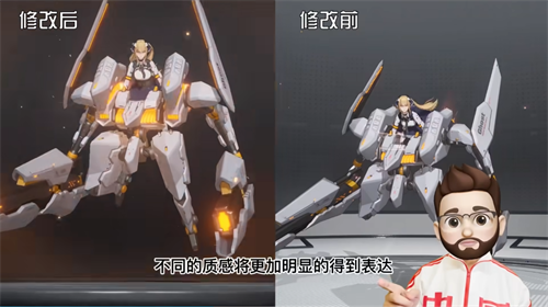 从视频演示中,我们还可以看到,战姬们的出场动画也进行了重做。修改后的动画中,战姬动作多变流畅,粒子光效丰富,机甲展开的瞬间振奋人心。比如妮娅出场,一个帅气的后跳跳上机甲,配合擦肩而过的导弹,机甲露出全貌。动画整体包括画面、运镜方面,比以往都要出色。