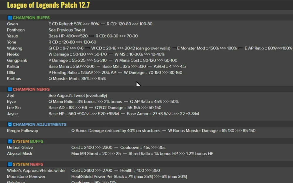 相对应的设计师将瑞兹q技能的ap加成从45%变到了50%。而凛冬之临这件装备的价格则从2600提到了2700,并且生命值加成从400变为350。兄弟们可能感觉这份削弱对瑞兹没什么,但实际上这样一来瑞兹就再也不是当前版本有肉又能打的存在了,q蓝量加成的削弱直接导致毒硬币的那种永霜冰心家凛冬的出装思路直接废掉。瑞兹只能选择走传统法师的路线,但问题是手短的瑞兹跟对方佐伊妖姬狐狸和薇古丝相比根本没有优势。