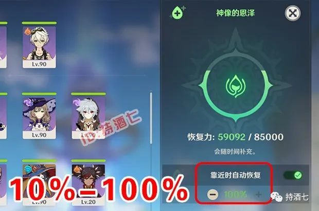 最厚,是对角色恢复血量的百分比。区间为10%到100%。最低每次可恢复到角色总血量的10%,最高满血。(恢复的百分比是按角色血量来恢复的。比如角色满血为100,现在只有1滴血。我们设置自动恢复为10%,那么角色的血量只能恢复到10滴血,而不是恢复10滴血。)