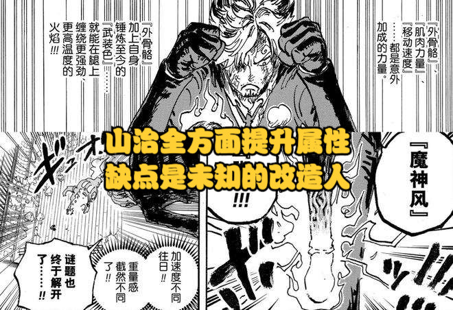 在攻击方面,山治也是把恶魔风脚进一步开发变成了魔神风,威力更加强大,就算是皇副级别也是可以撂倒的。