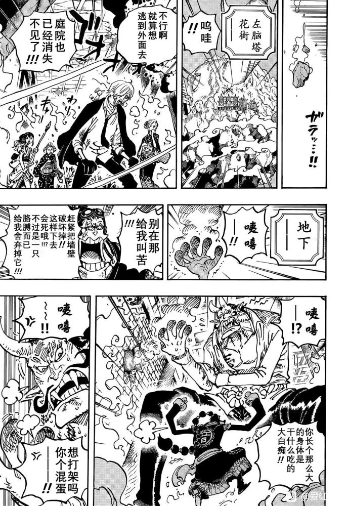 其实在前面的剧情里,尾田曾经给了桃之助一个拖住鬼岛的任务。但随着剧情的发展,尾田放弃了这个情节。这使得桃之助和武士们一样,身上充满了工具人的意味,什么时候需要插入点和之国相关的剧情了,就把他们叫出来闹腾。这一话突然让雷藏救火也是如此。