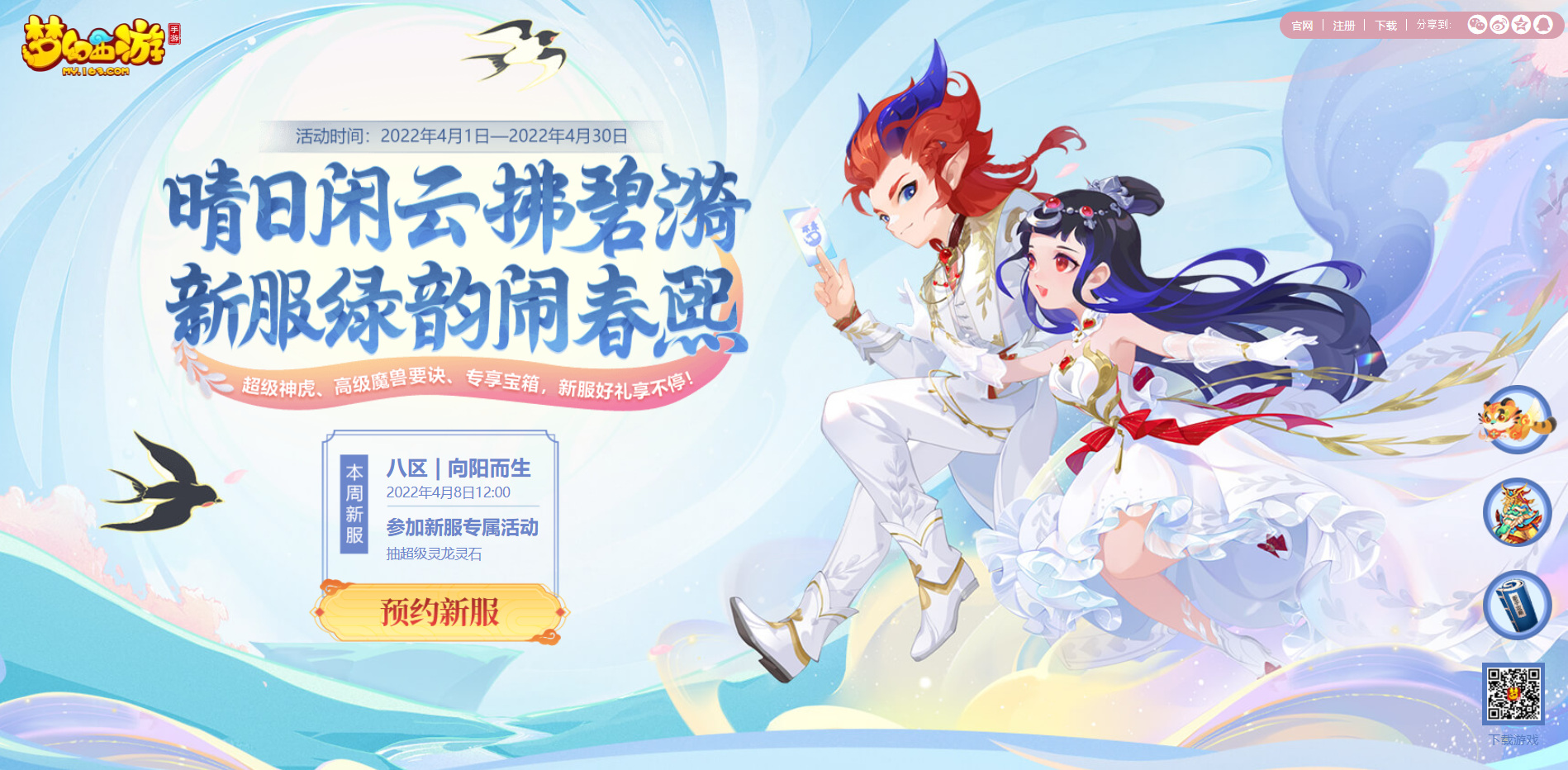 《梦幻西游》手游4月8日双平台新服【向阳而生】即将开启,扫码即有机会获得彩小驴坐骑、高级魔兽要诀、超级灵龙灵石等多重好礼。快来新服游戏,领取丰厚奖励吧。