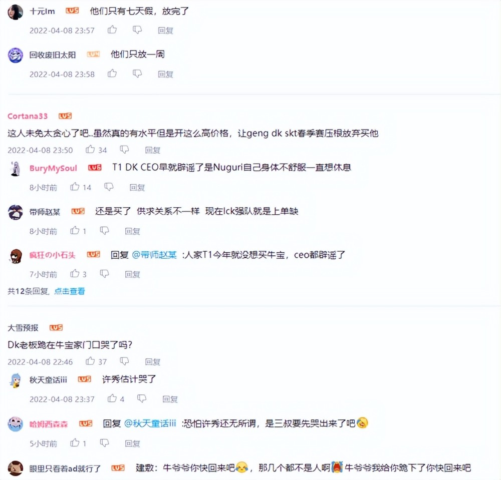 大家对Nuguri的表现寄予厚望,LCK观众也不例外。得知牛宝回归的消息众人欢呼:要把hoya和burdol两位上单送去二队吗?反正Nuguri肯定首发。他一回来许秀就可以围绕上路打,这对DK很重要。整个春季赛他不知道要帮哪里,状态下滑明显。夏季赛有Nuguri对战zeus的比赛,应该会很有意思,夏季赛可以进决赛了吧。