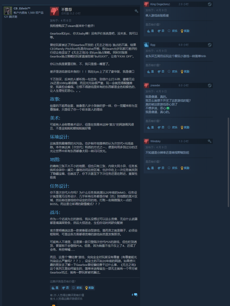 但是对于游戏质量,还是有很多玩家并不买账,甚至有在EPIC玩过的老哥特意来steam买游戏差评,直呼RNM。