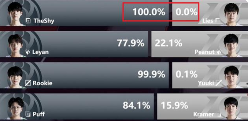 即便是369和圣枪哥称他为心魔也并不是最惨的上单选手,在小花生来LPL的那个赛季中,与之同队的上单lie,不仅是赛前支持实力榜上首次出现100%支持率,一边倒支持theshy的情况让其备受打击之外,这场比赛小花生的失误操作让其切身体验了一把“人间炼狱”的感受,在给theshy送起飞之后小花生对lie不管不顾,让他结结实实“坐牢”了一整局。而在这场比赛过后就再也没有见到过这名选手的身影,直到现在为之这名选手犹如人间蒸发。所以说,theshy虐哭一名上单选手相比于打没一个选手,确实可以称之为常规操作。