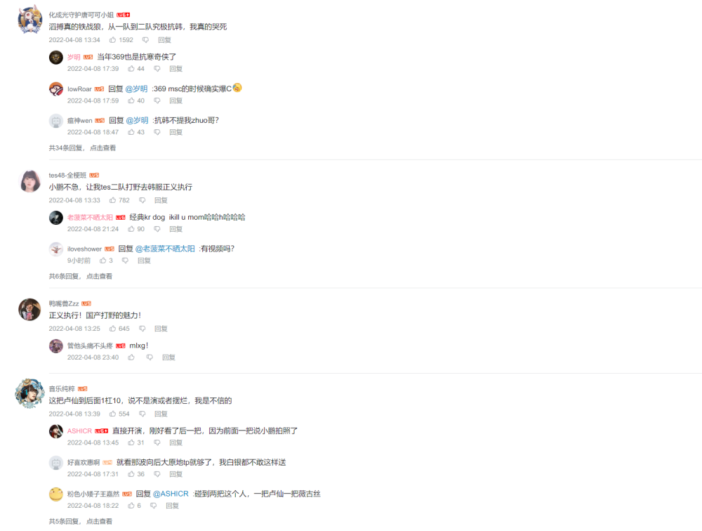 这波操作之后,也是引起了非常多网友们的热议,要知道TES可不仅仅只有小鹏一人这么做了,之前二队的打野就在韩服喷过LCK选手,虽说那些话比较粗鲁,但应该绝大多数LPL观众看着还是很爽的。