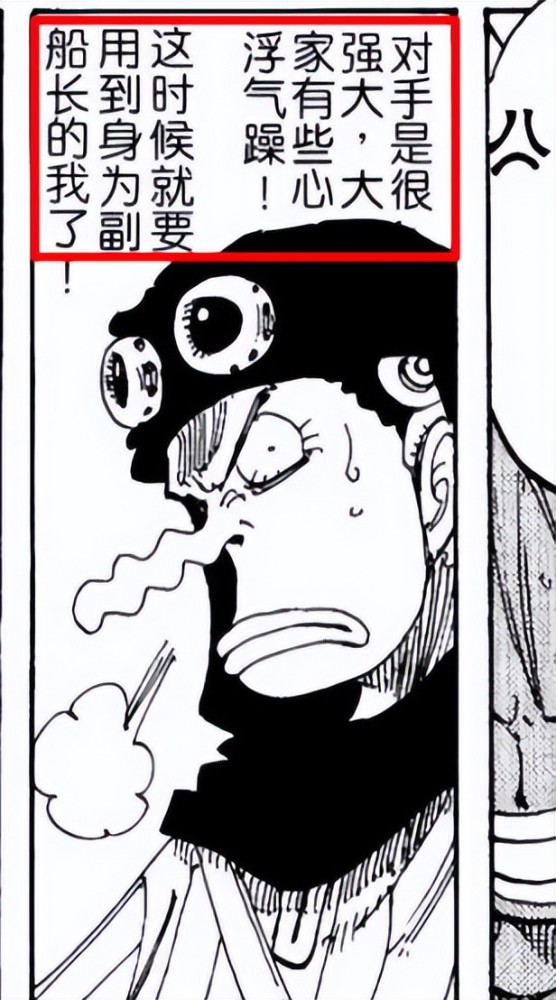 别忘了乌索普当年曾说过这样一句话:“对手是很强大,大家有些心浮气躁,这时候就要用到身为副船长的我了”,这话虽然乌索普有些装逼,也侧面说出了副船 需要拥有的实力,至少在 船长不在的情况下,副船能够顶上船长的位置保护大家。