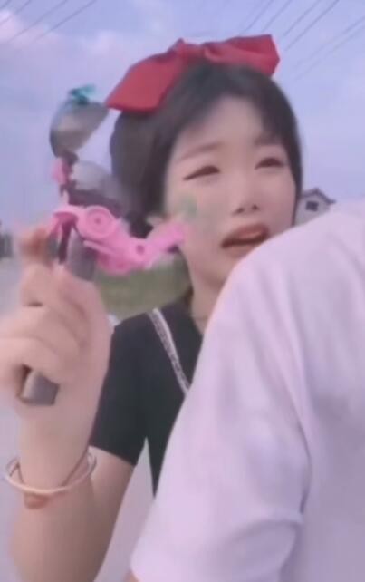 3、视频当中的女生坐在男生的电动车后座,表情非常夸张,声音也非常嗲的喊“giegie”而成功火爆全网;