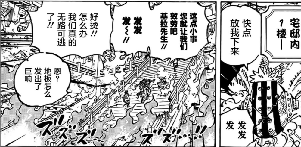 草帽海贼团的二把手索隆重伤危机,被弗兰奇扛着逃。